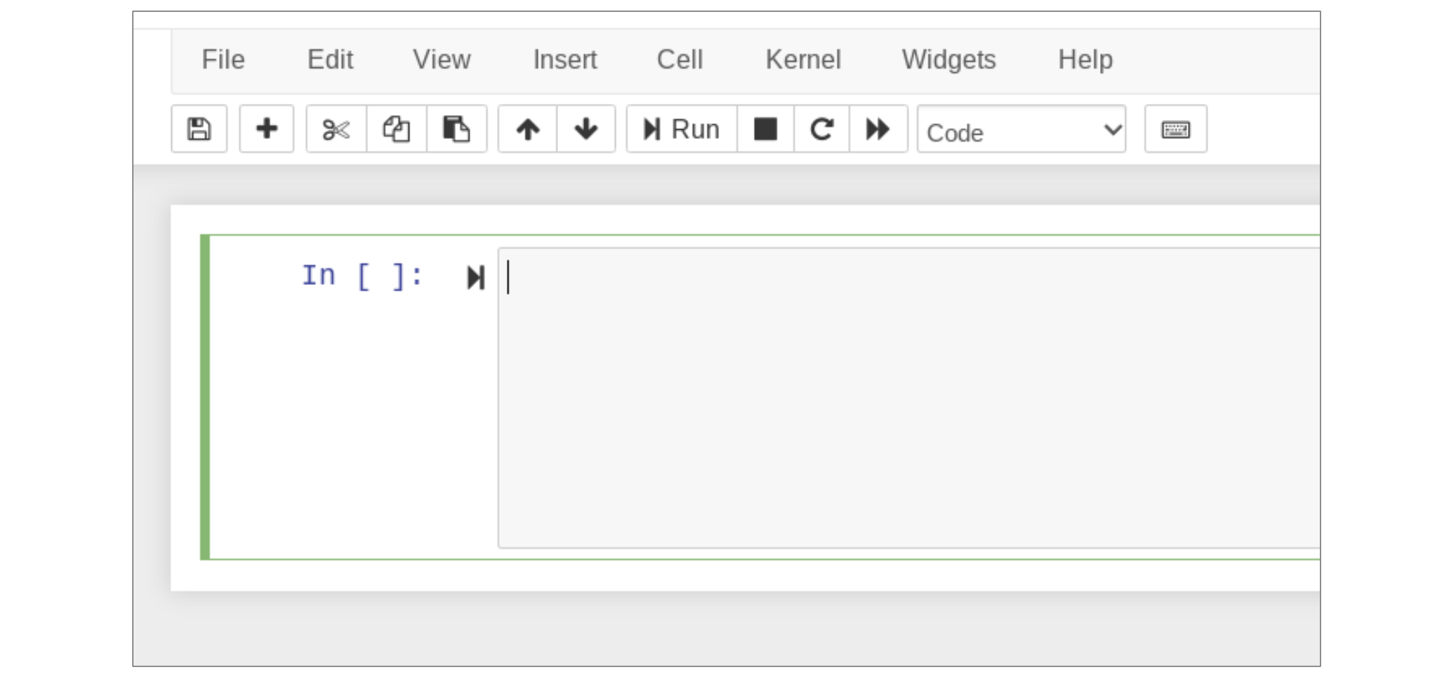 Selecciona una celda y haz clic en el botón Ejecutar de la barra de menús de la parte superior del cuaderno.